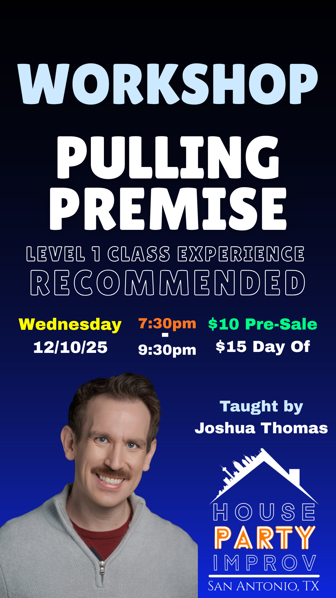 This workshop will cover the differences between Organic and Premise based long-form improv and how to approach performing each style. We will dive into tips and tricks for pulling premises, and generating scenes ideas from various openings. Then taking it a step further working on the initiating lines to bring your scene partner and the audience on board as quickly as possible and get to having fun and making comedy happen.
