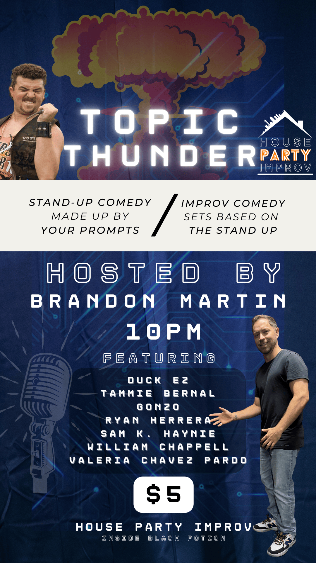 Come grab a drink at the bar, and settle into a wonderful hidden theater located inside of Black Potion and support these funny fresh improvisers. Maybe one is even your family member or friend? Whether you know them or not, discover your new favorite performer in their debut short form show! All that plus House Party, our signature house troupe will close out the show making hilarious absurdity out of your true stories.
