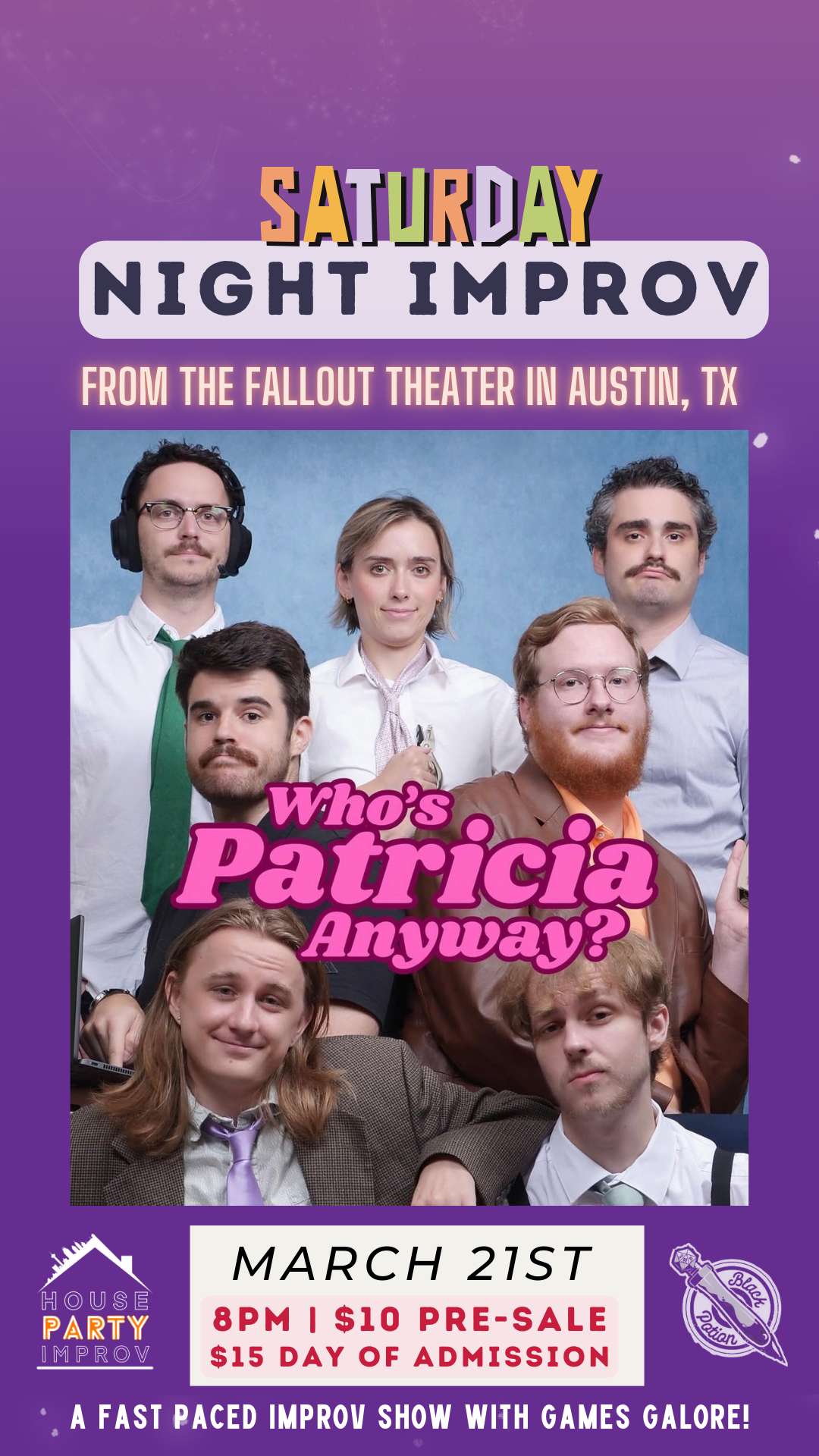 Patricia is a VERY busy woman booking HUNDREDS of shows. As her assistants, we often have to cover for her when she doesn’t (ever) show up. We bring silly energy and mix it in with professional performance. Completely home-grown in Austin, our members range from professional actors with MFA’s to mechanical engineers, bringing a wide range of life to our scenes. Expect geeky, obscure, and flirtatious references in a night of energy and fun!